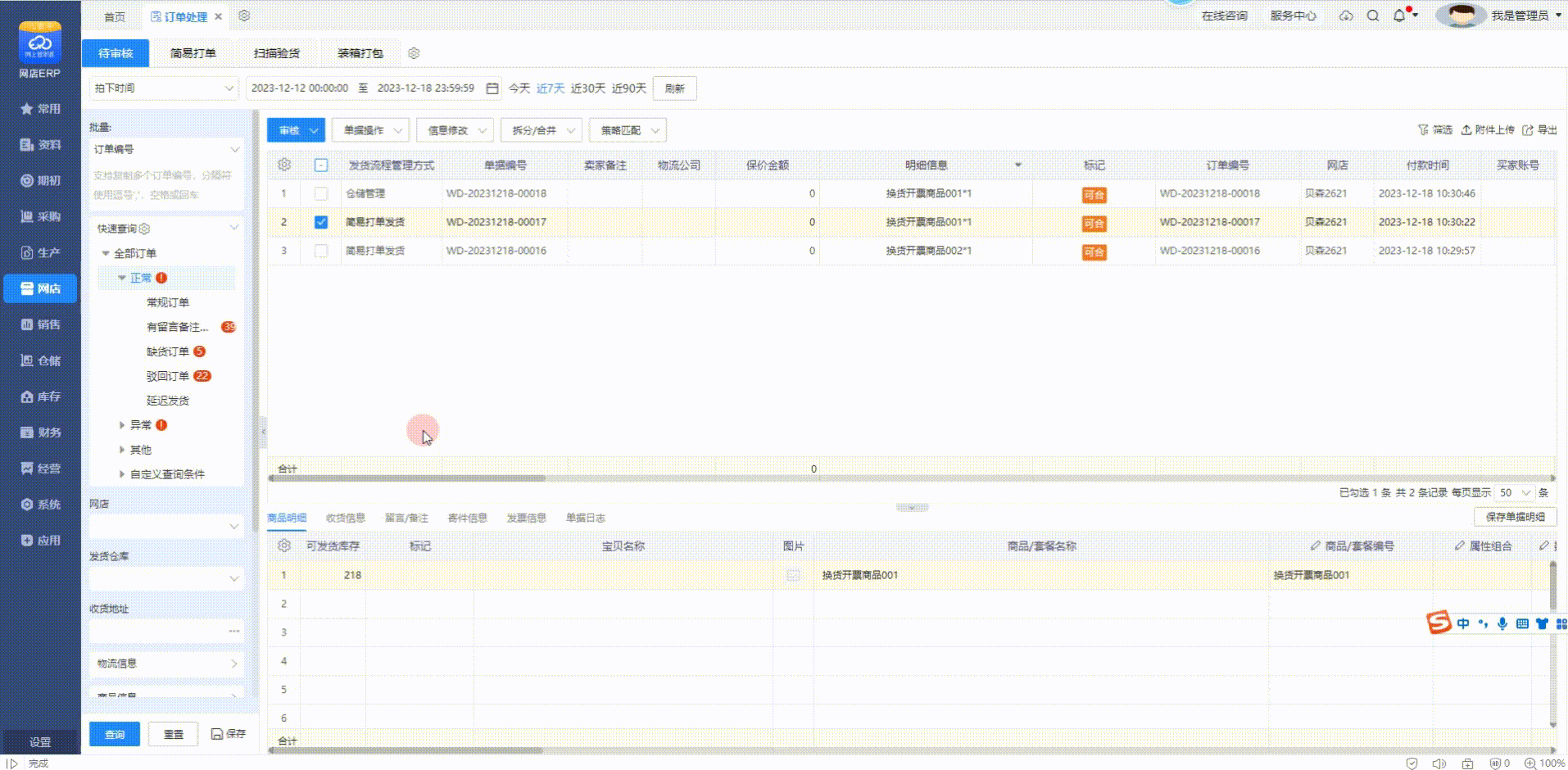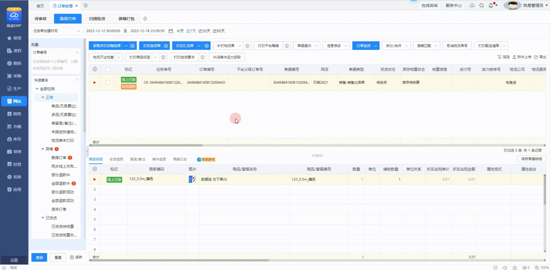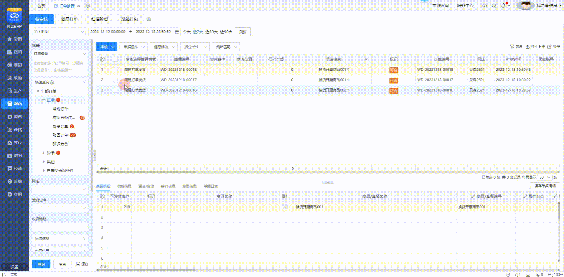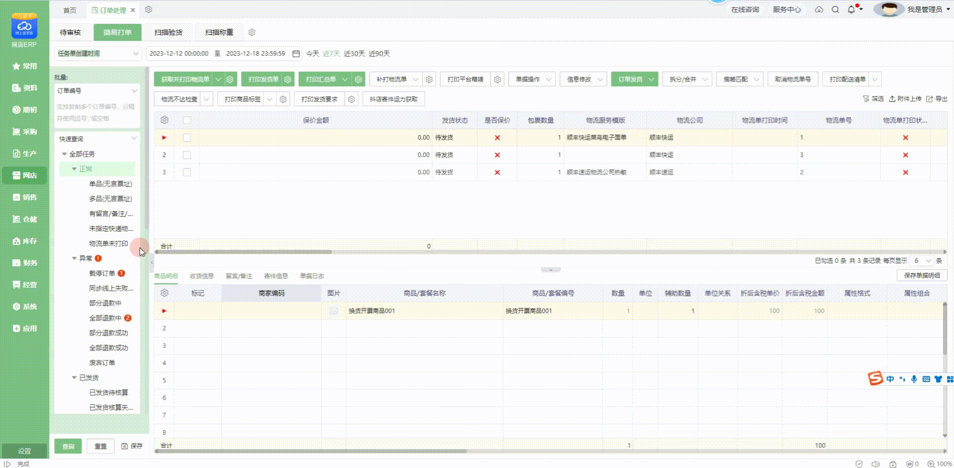 说明:仓库里每个套餐的商品都是放在一起的,打印物流单的时候,希望按照套餐名称去排序,将相同套餐名称的套餐排序在一起进行打单发货,方便拣货