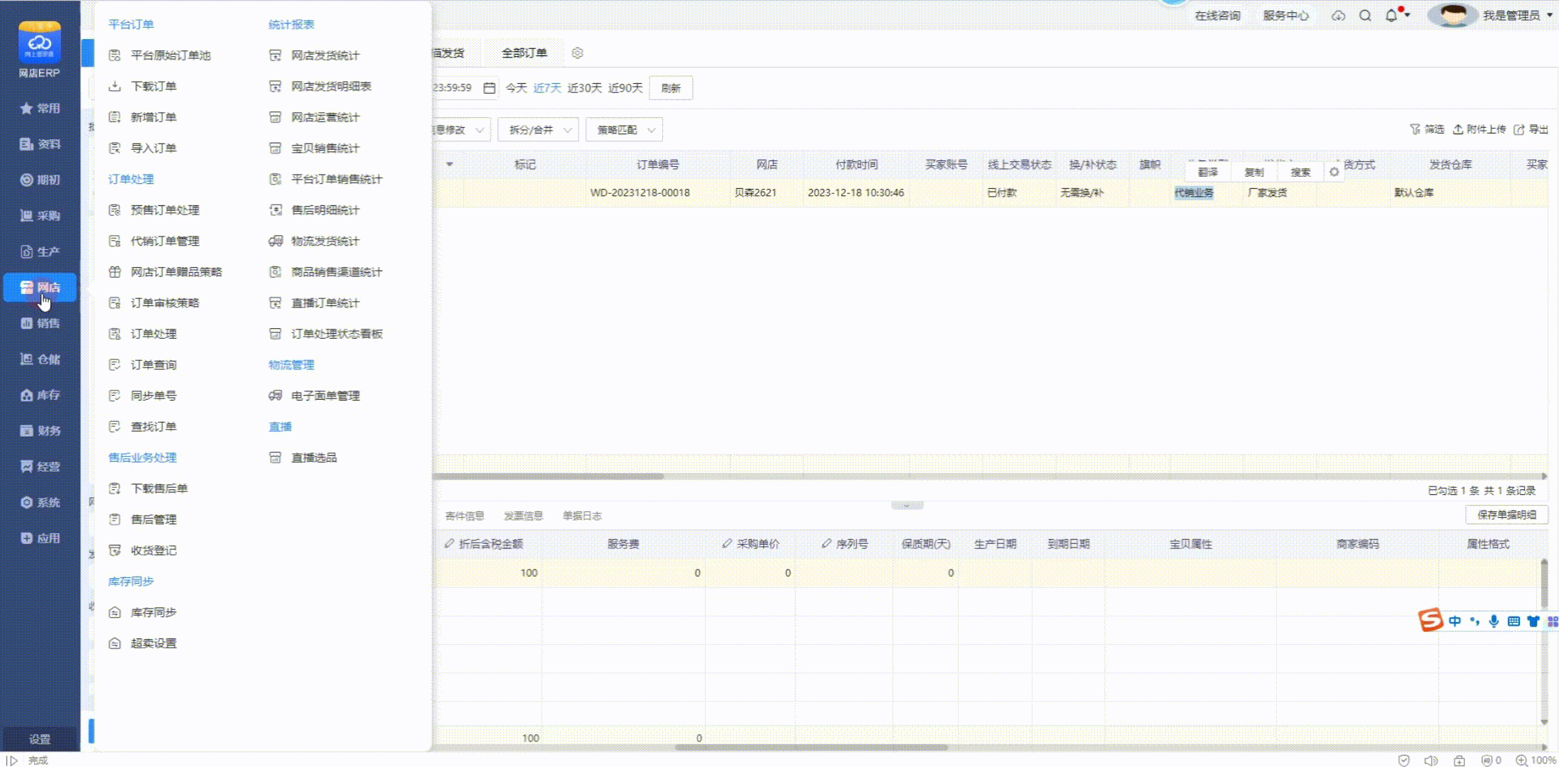 七、网店-订单处理-代销订单——支持手工填写采购价