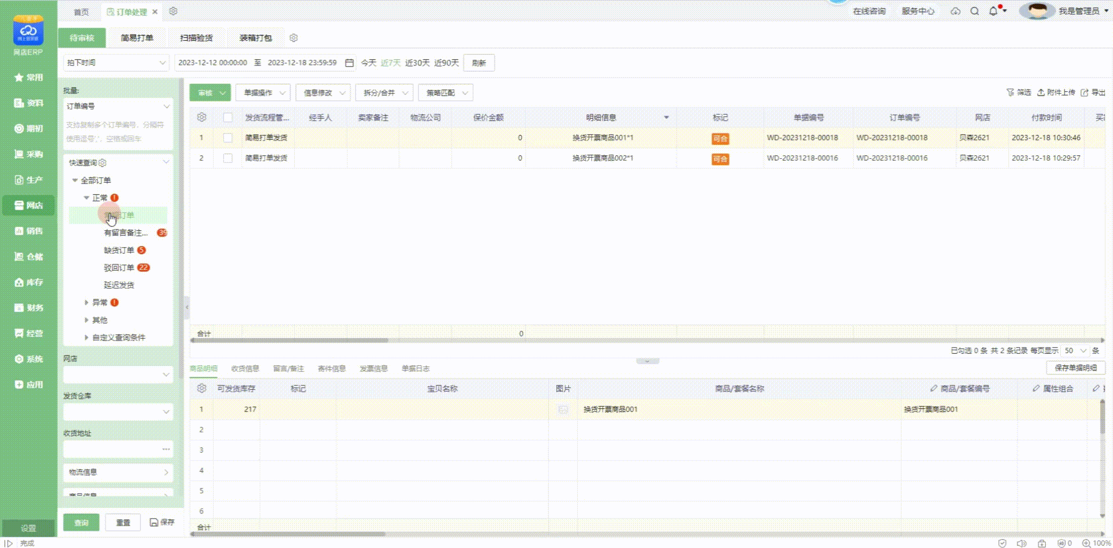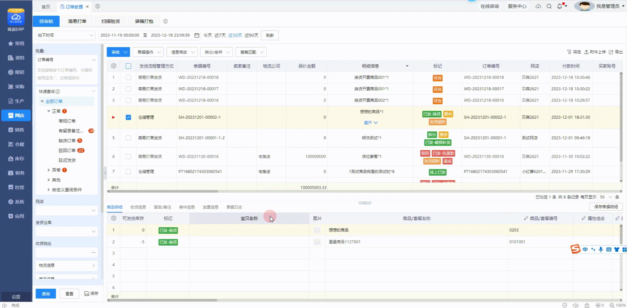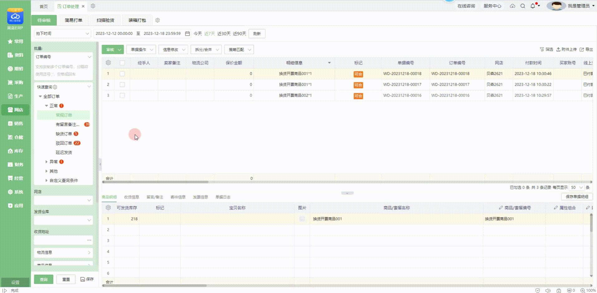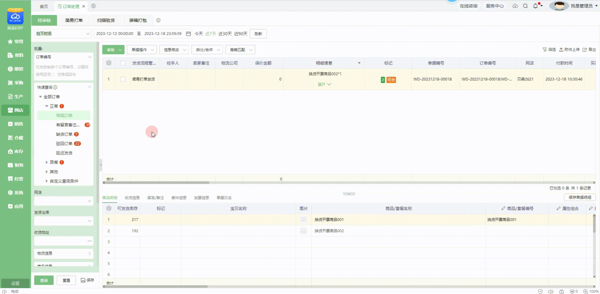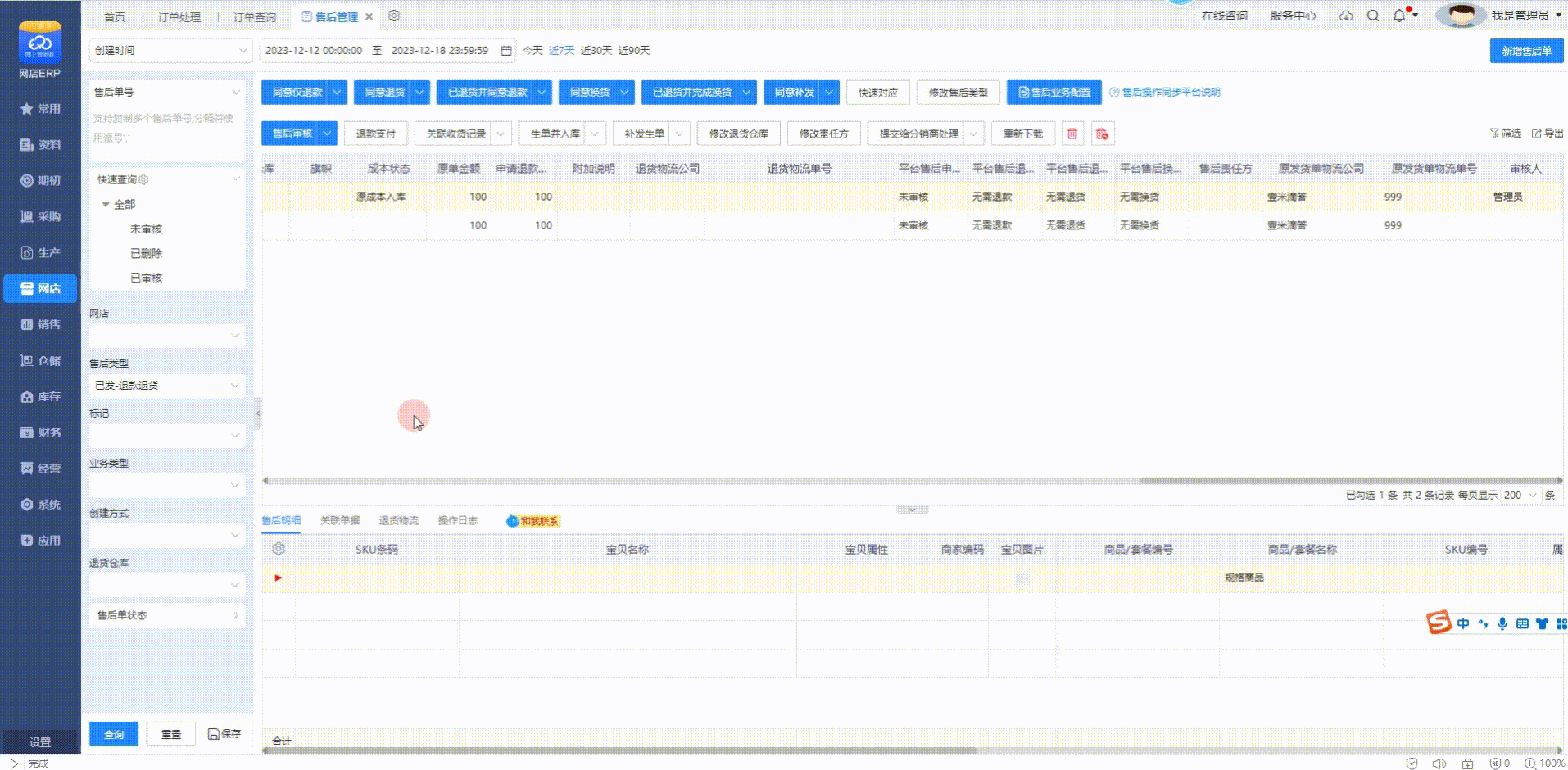 十四、网店-订单处理-补发订单拆分以及售后单与发货订单关系