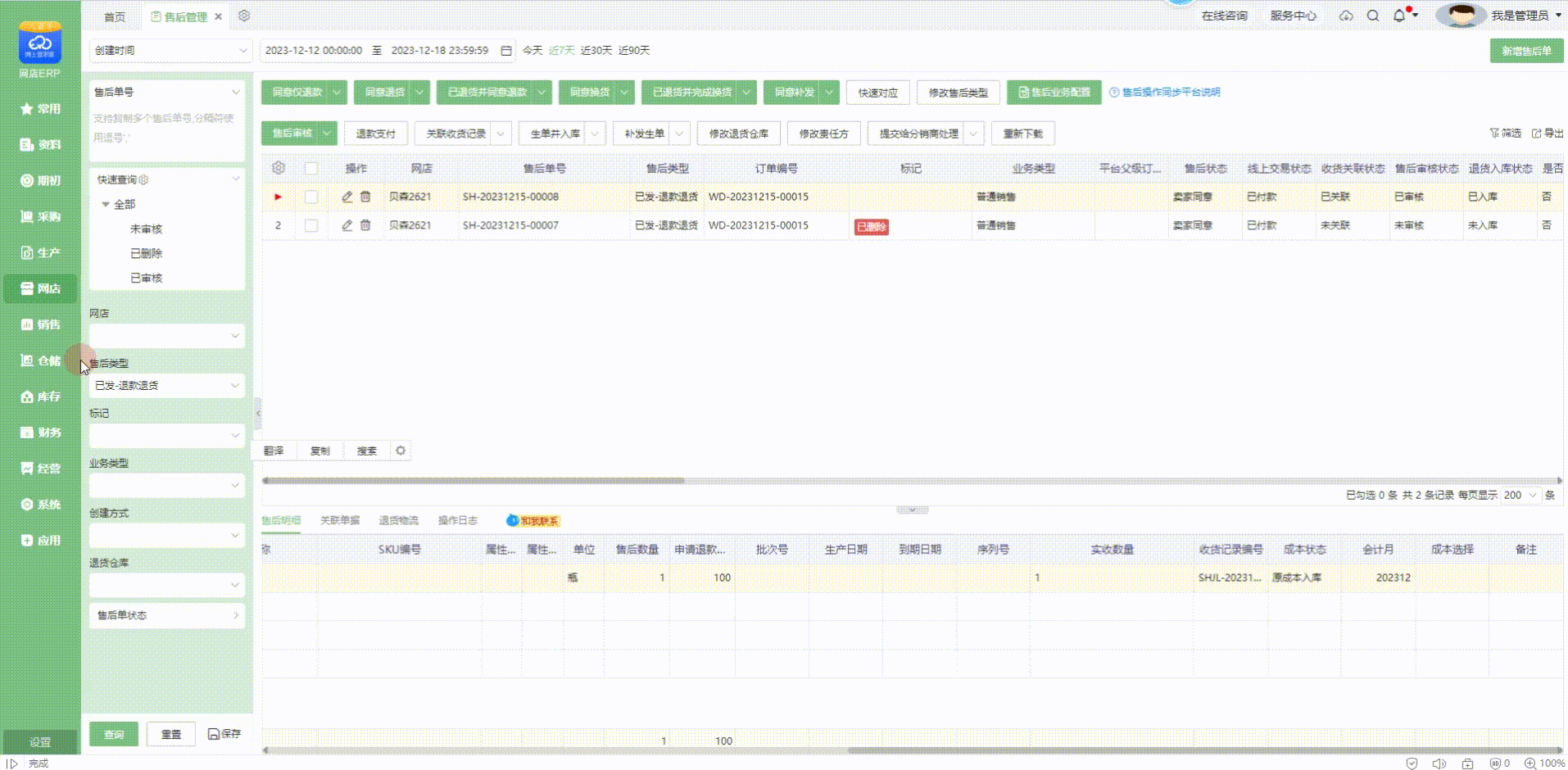 二十四、网店-售后管理-售后申请单入库状态逻辑
