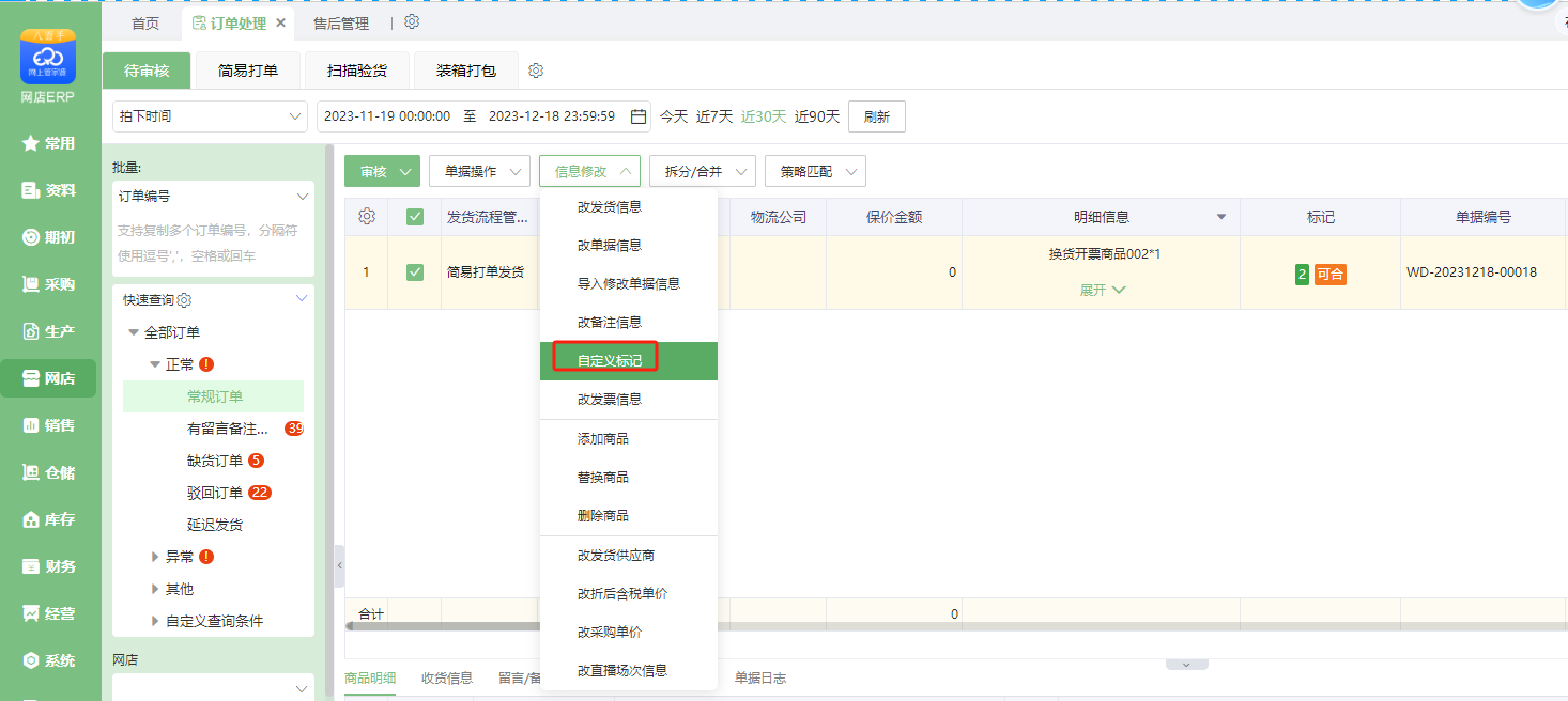 六、网店-订单处理-待审核-支持修改订单发货流程方式