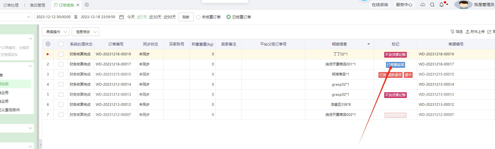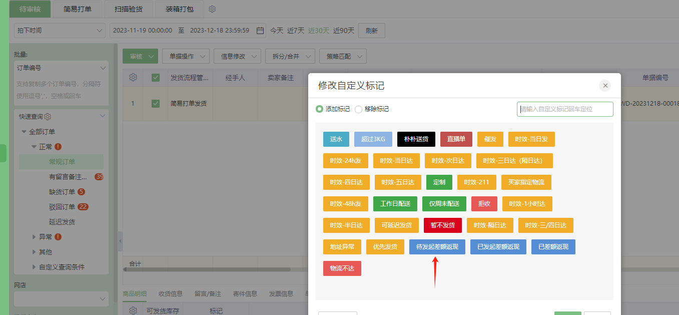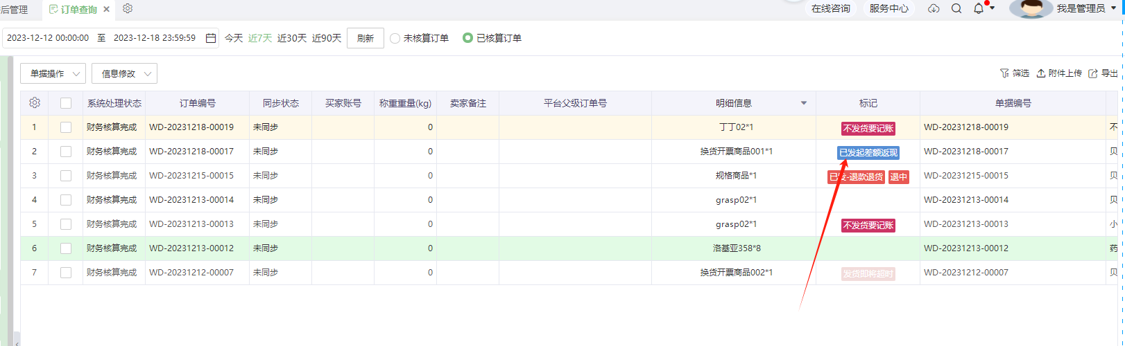 如果订单需要差额返现,审核时可以打标-待发起差额返现;新增售后单-卖家补差,订单更新标记为已发起差额返现;售后单处理后,订单标记更新为已差额返现