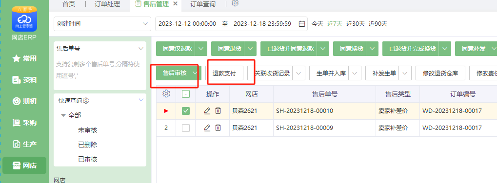二十五、网店-售后管理-仅退款业务——退款支付后生成销售退货单