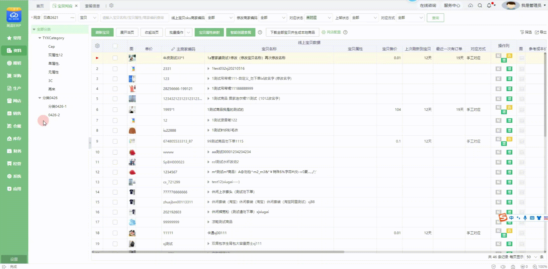2、在期初库存商品导入分类后无法调整分类信息,跳转处理麻烦