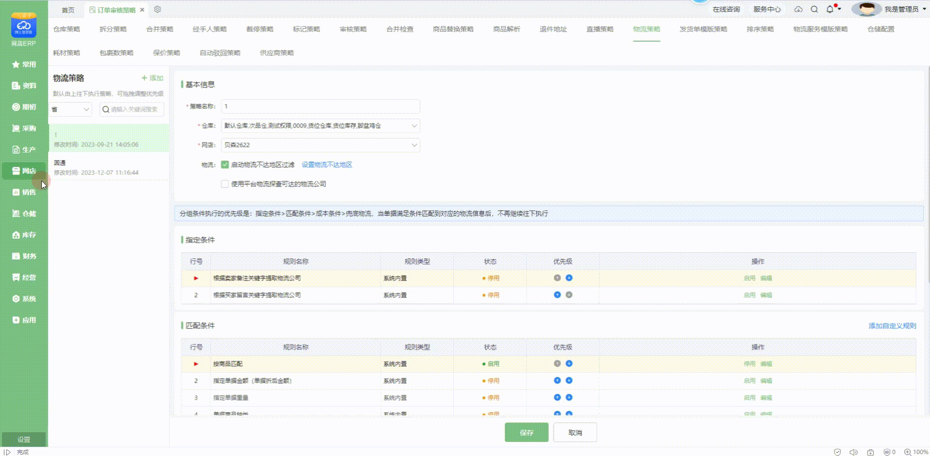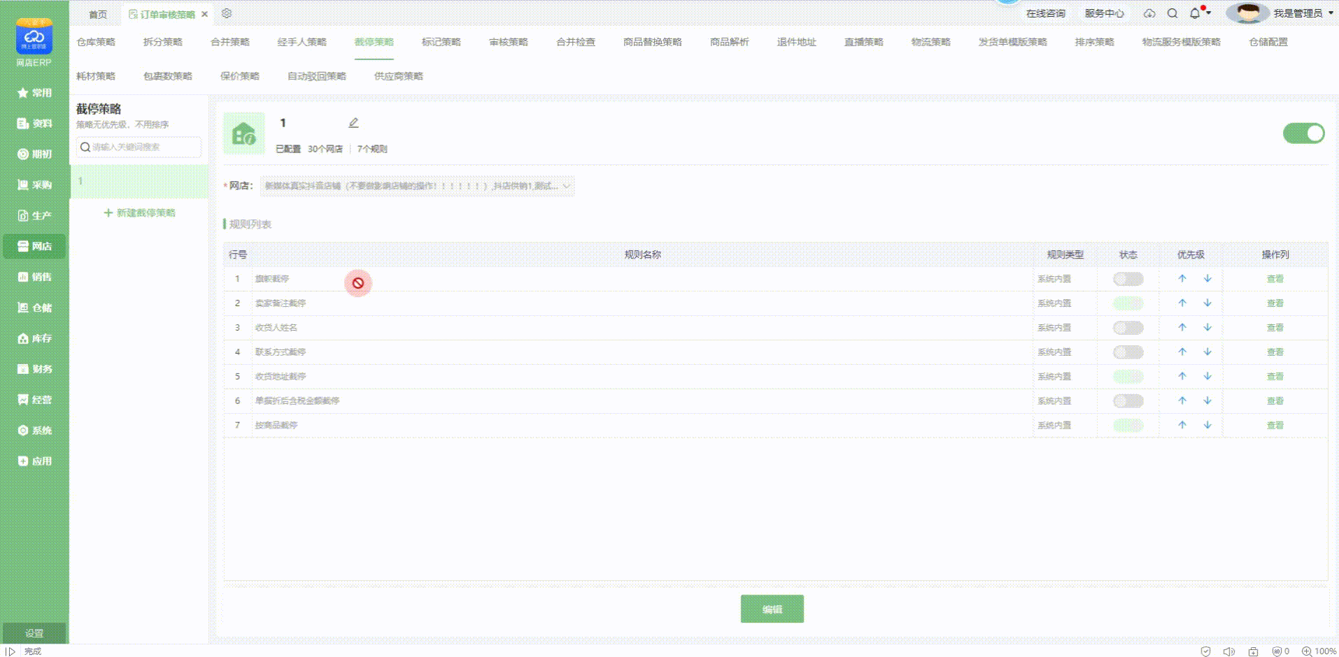 二十七、网店-订单审核策略-截停策略-按收货地址截停