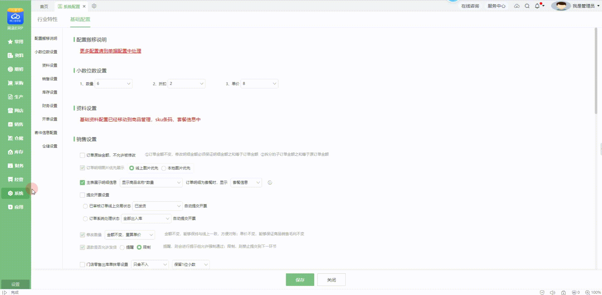 二十二、系统配置——取消资料设置开关,增加到业务现场进行配置