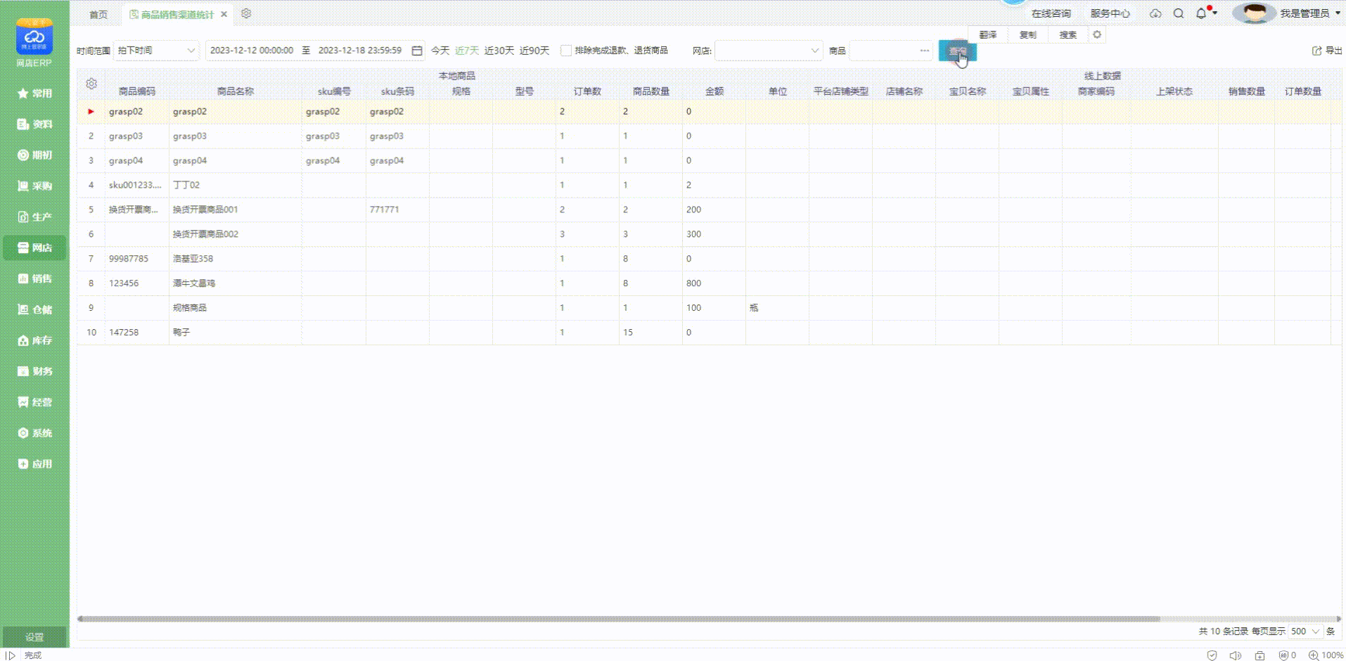 销售明细表:制单人、SKU条码、单据表头、来源单号、表体自定义字段等