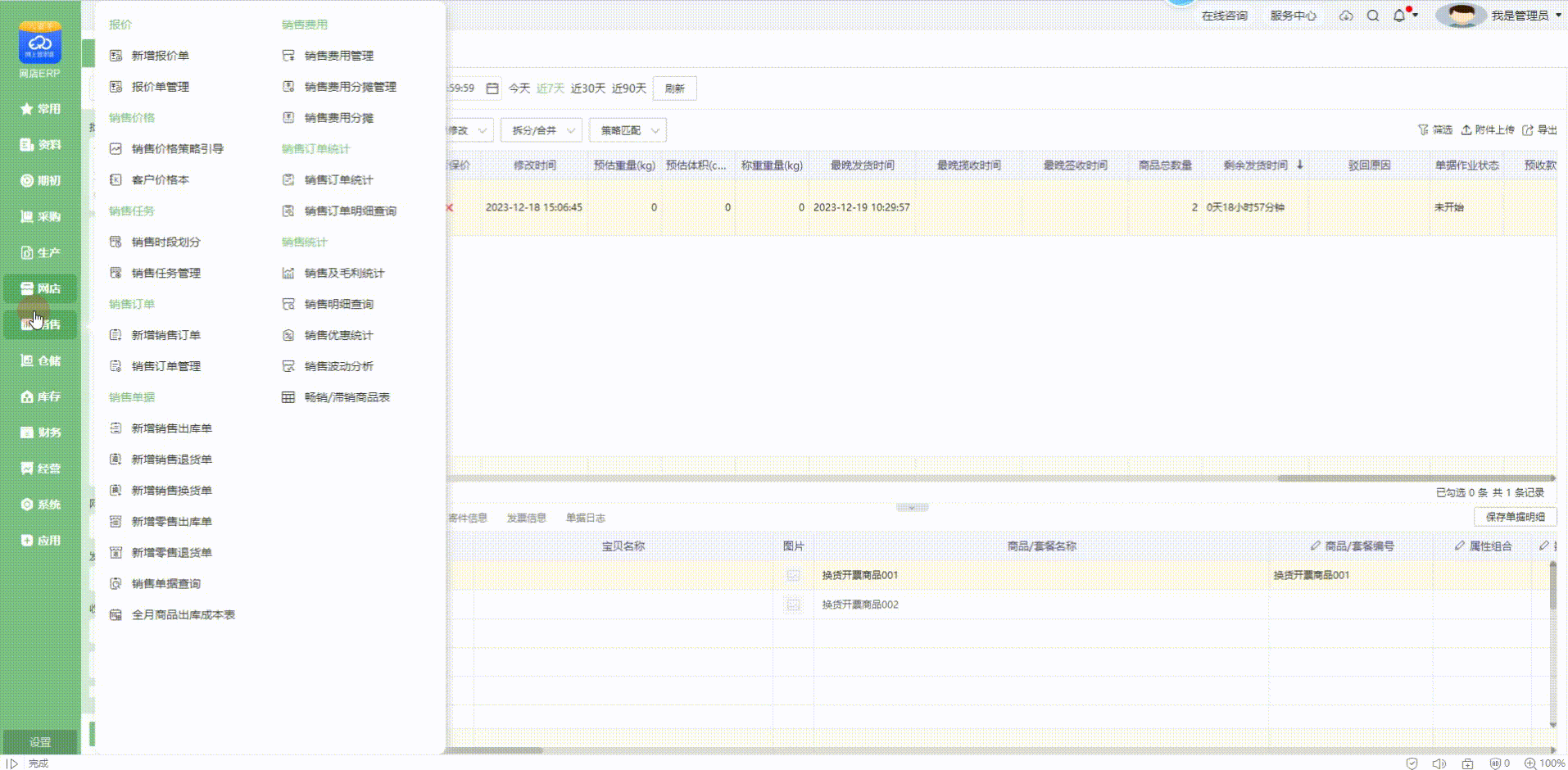 销售订单统计:长、宽、高、体积、重量、总重量、总体积等