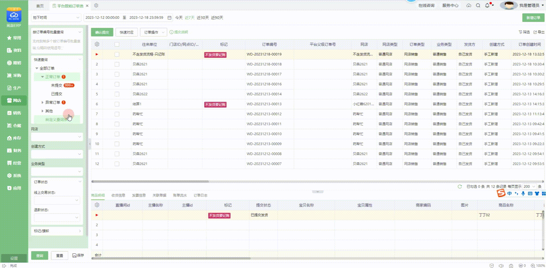 说明:当勾选了一批订单去进行获取物流单号、打印物流单、打印发货单等操作时,存在不满足条件的单据,不会直接跳过,会直接报错,终止掉操作;从而影响这一批订单的打印,严重影响效率