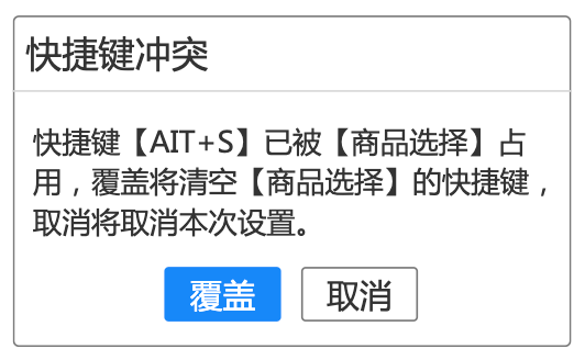 5.快捷键设置不允许相同,设置为相同时进行提示快捷键冲突,用户自行决定要不要覆盖之前设置的快捷键。