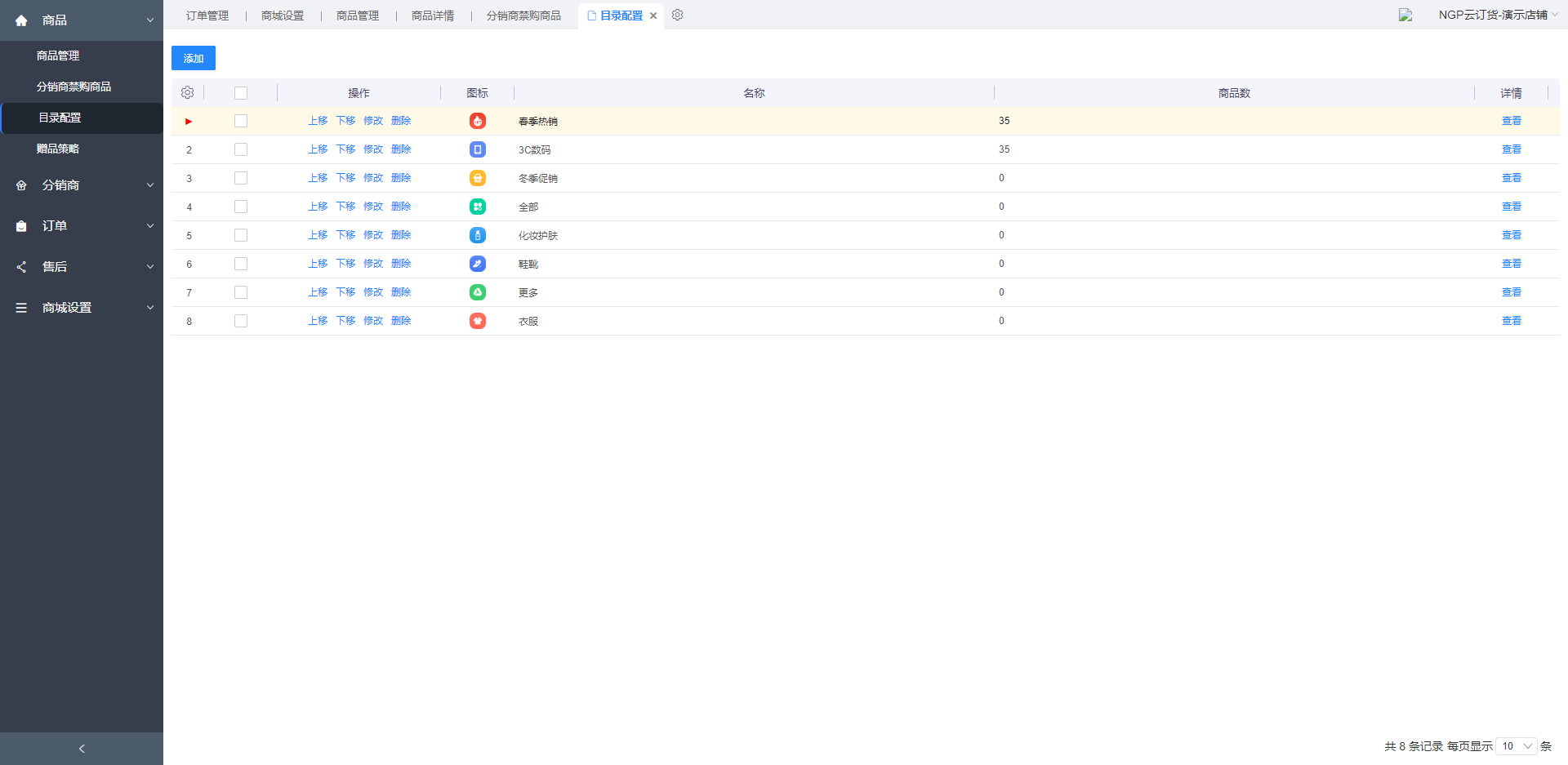 ●创建目录,勾选商品快速创建目录在小程序端显示在首页
