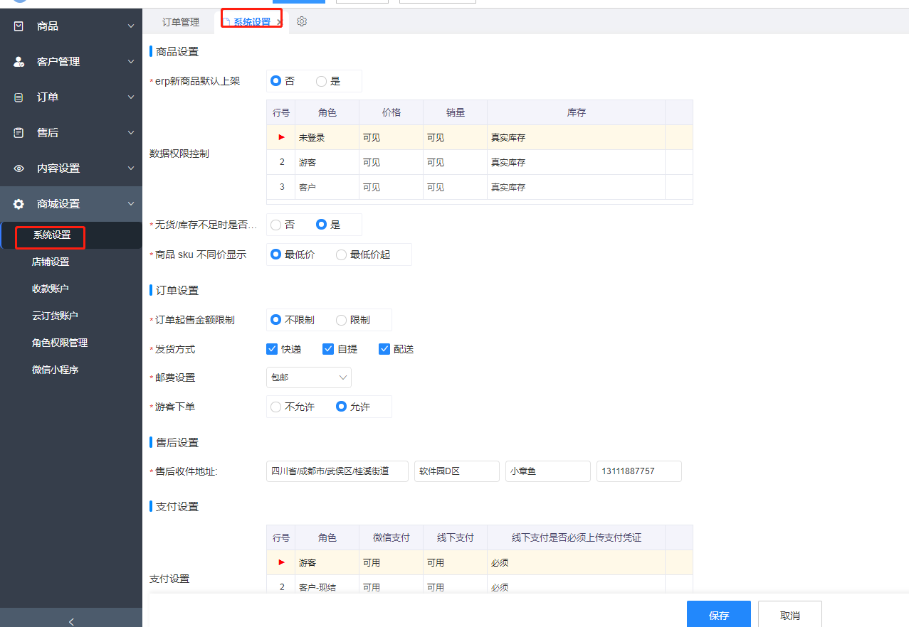 ⑧游客下单:配置是否允许游客下单(游客默认零售价下单)
