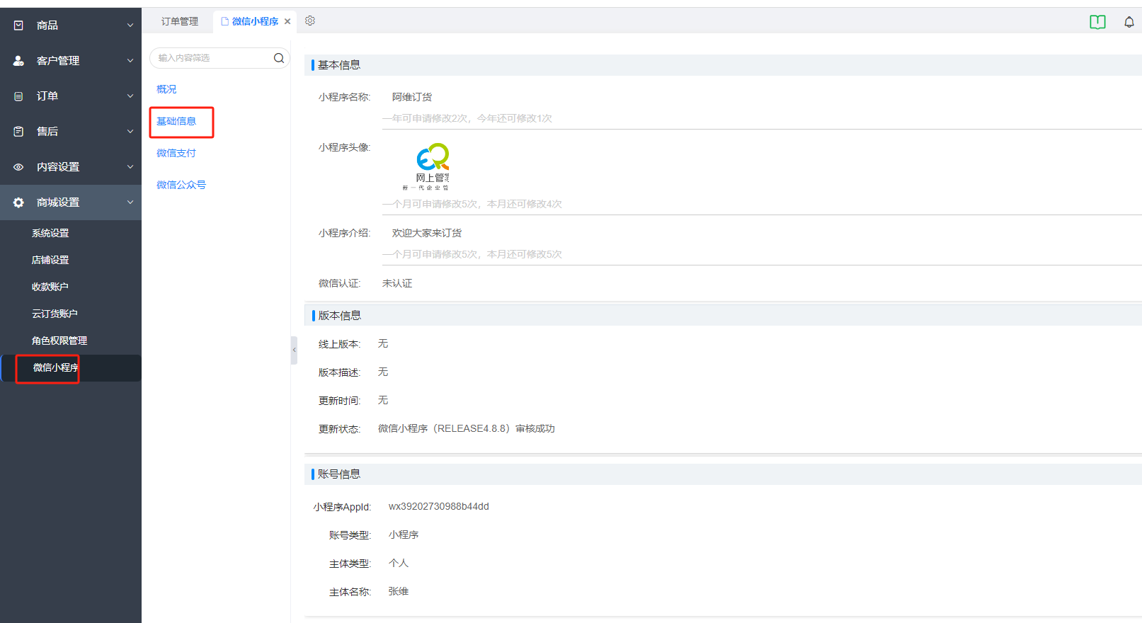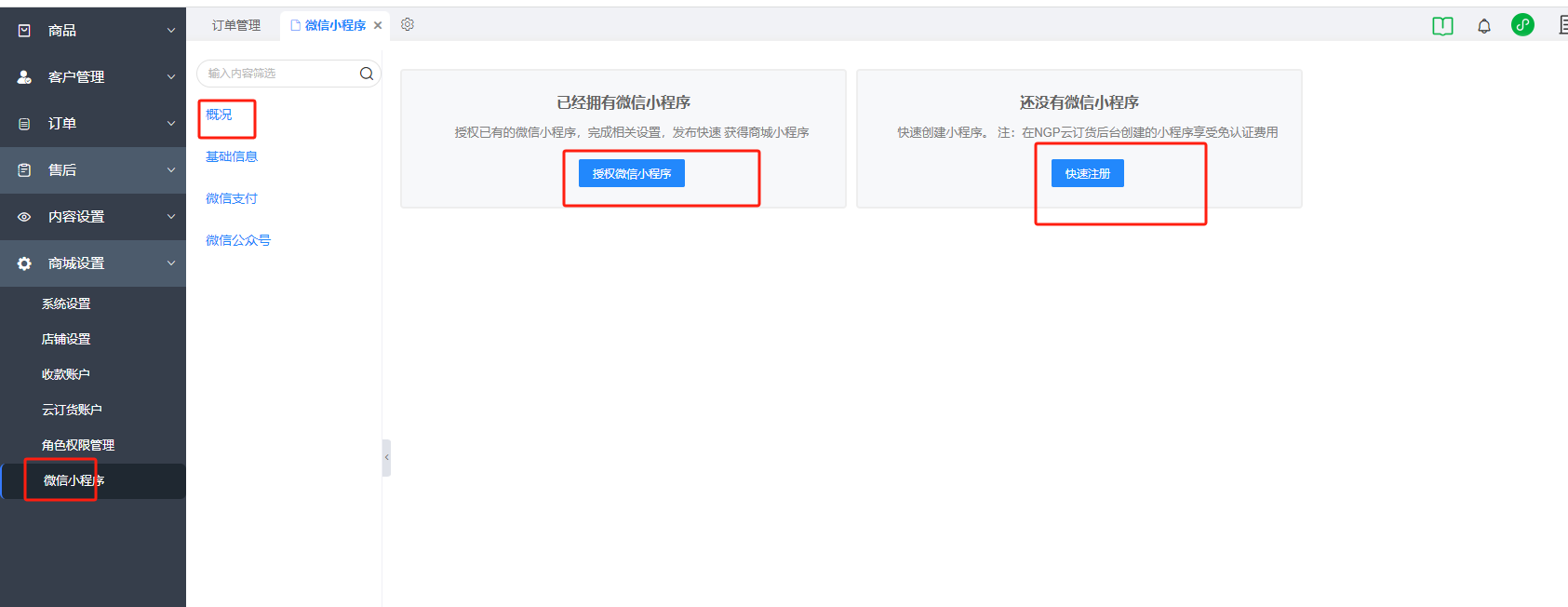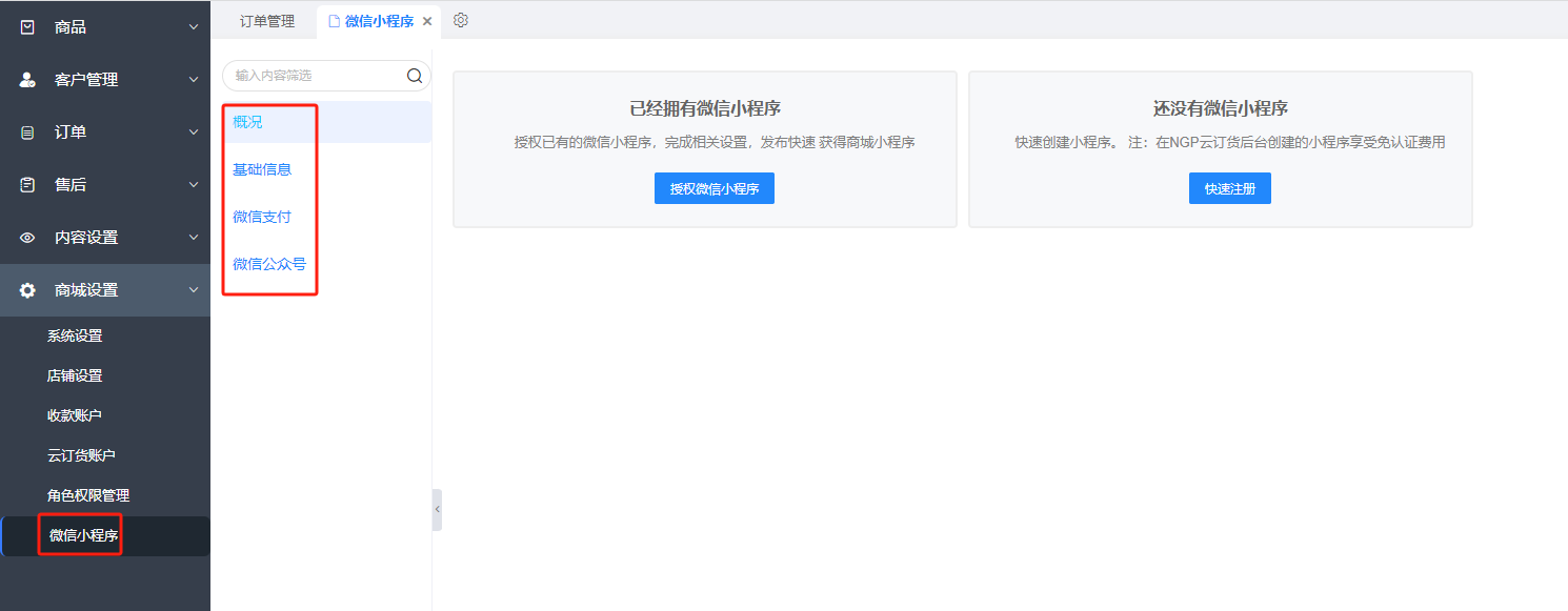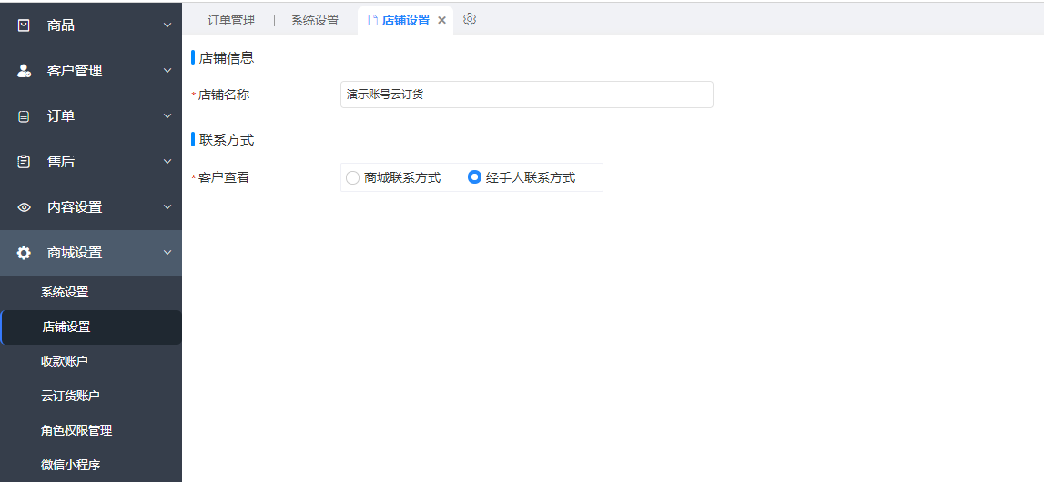 说明:云订货后台主要是配置小程序,管理商品等信息,处理云订货订单、售后订单的功能。