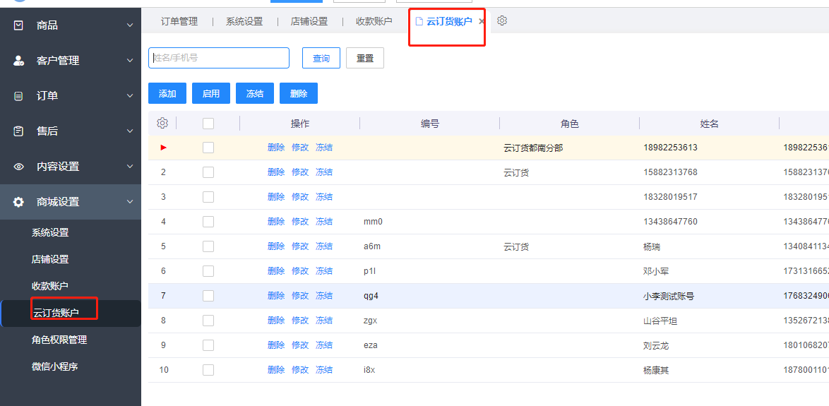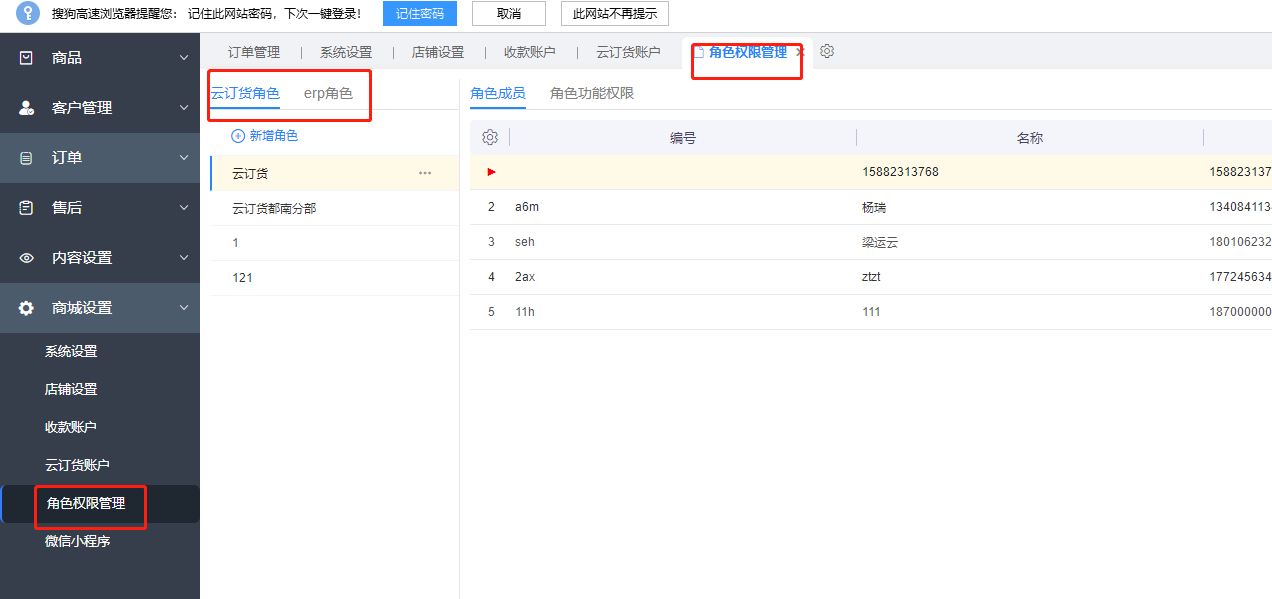 ②设置角色功能权限,相应的账号才能登录云订货后台