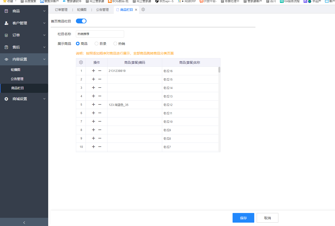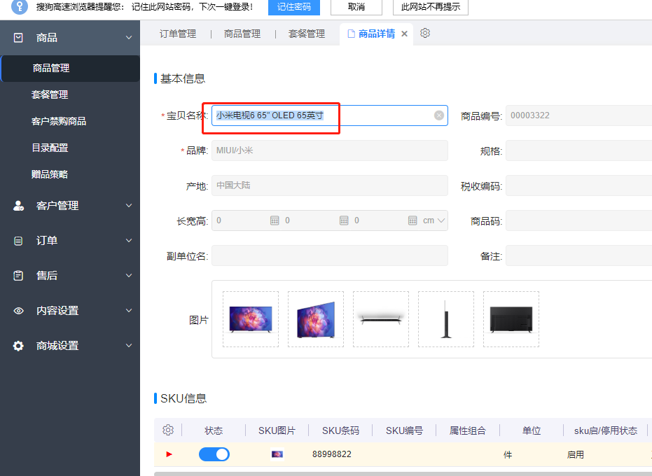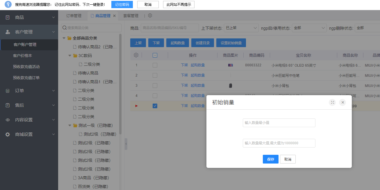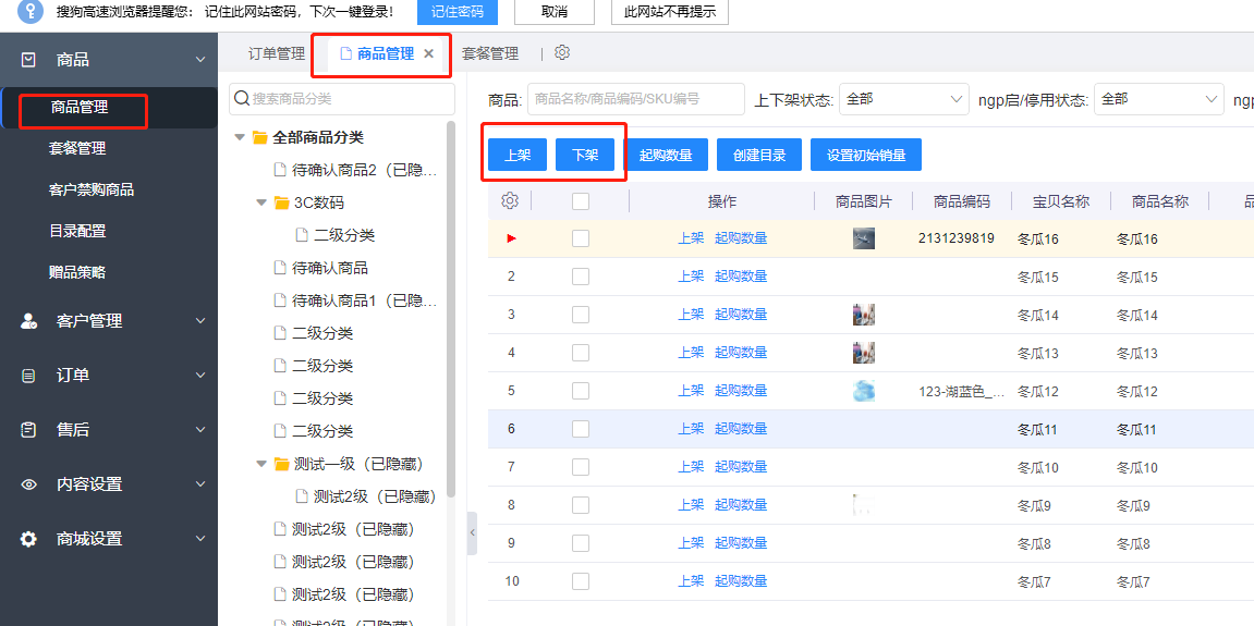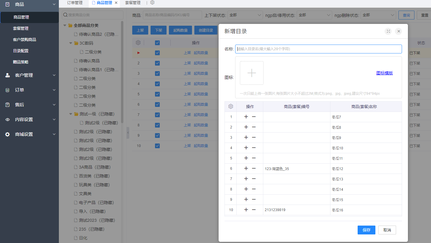 1、商品管理、套餐管理(云订货商品从ERP自动同步)