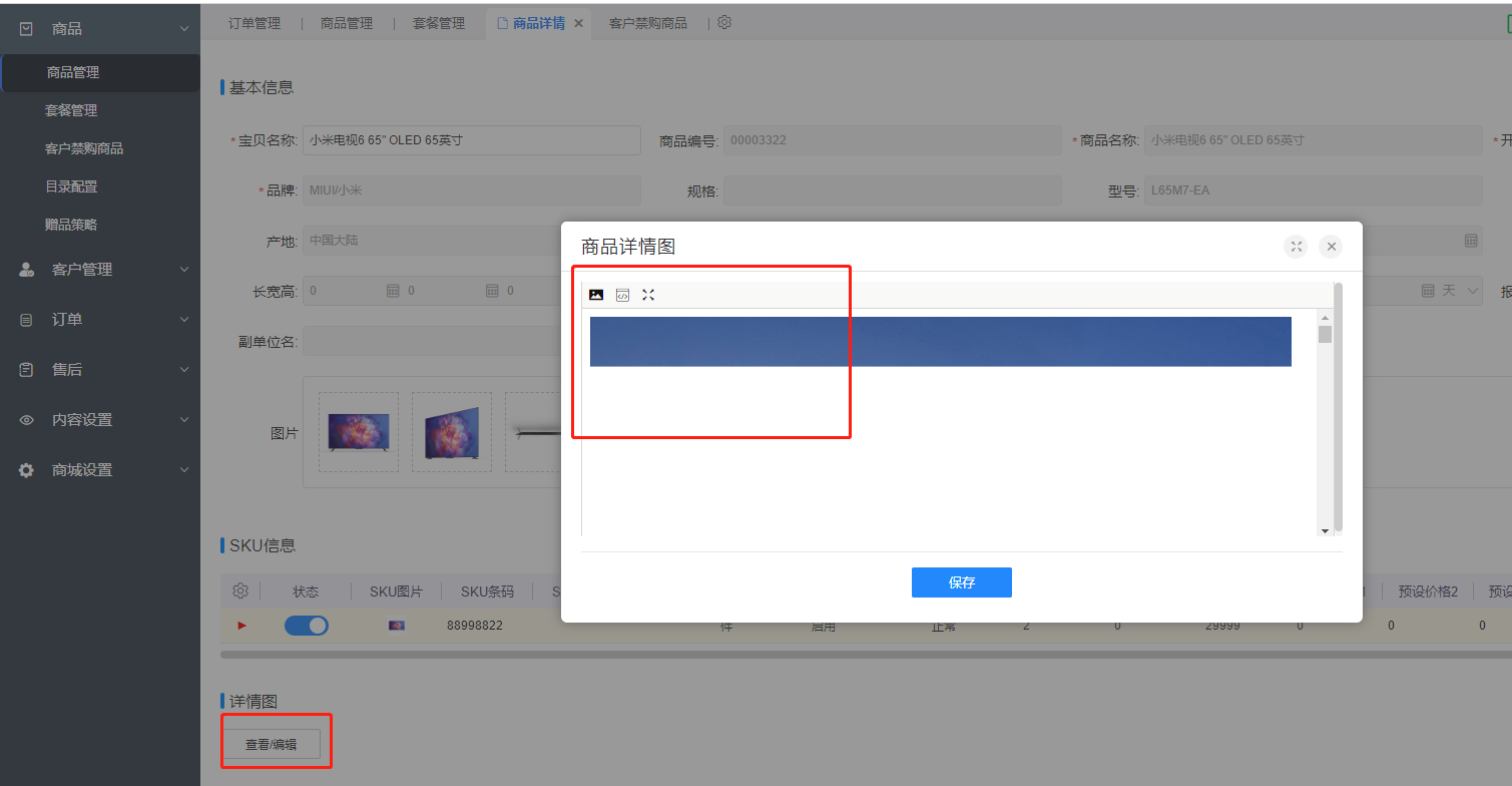 ● 商品详情中设置详情图,在小程序上商品显示详情