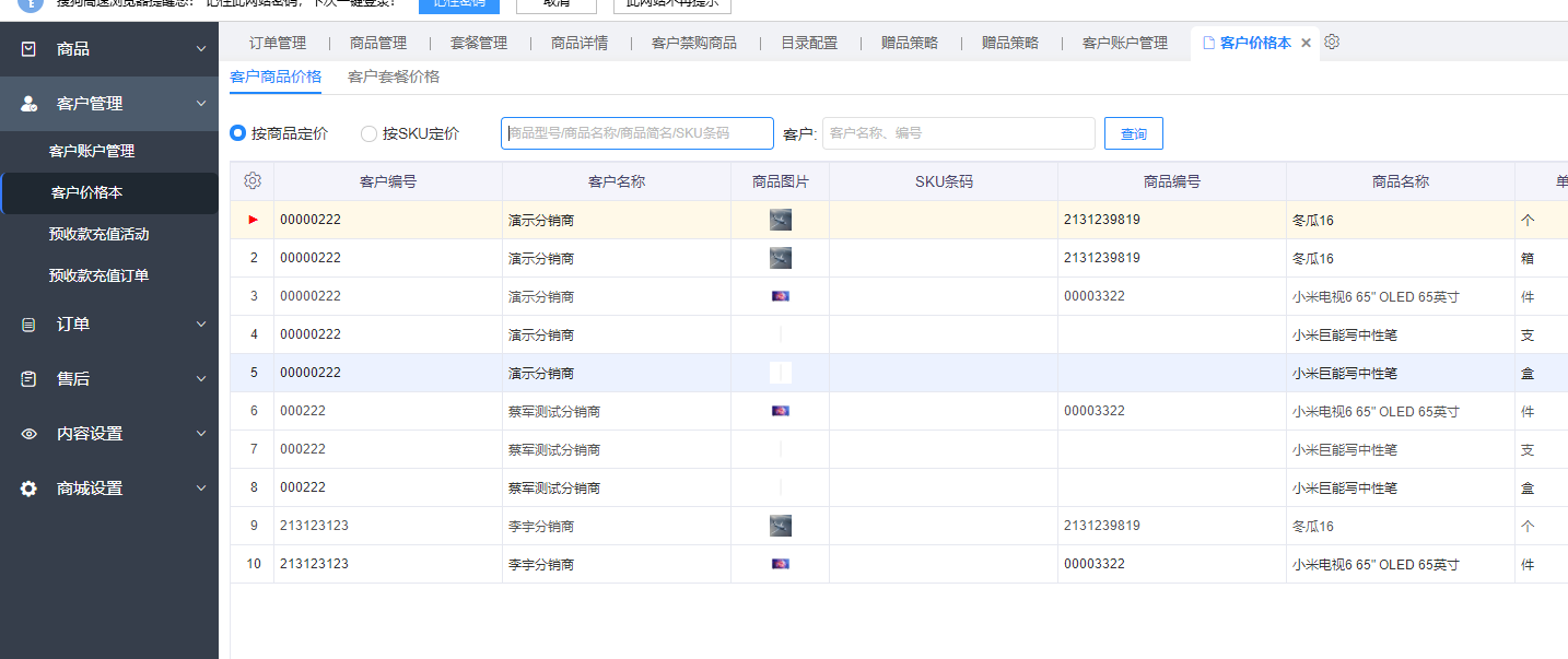 说明:在ERP上设置,同步到云订货后台,可对不同正式客户设置不同的价格;游客统一获取商品零售价进行下单