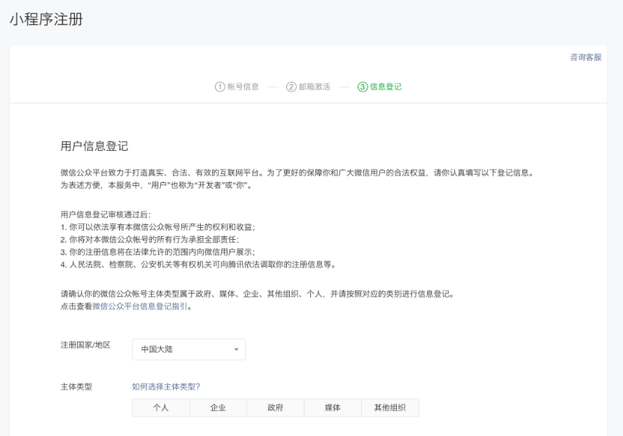 参考流程:https://developers.weixin.qq.com/miniprogram/product/renzheng.html